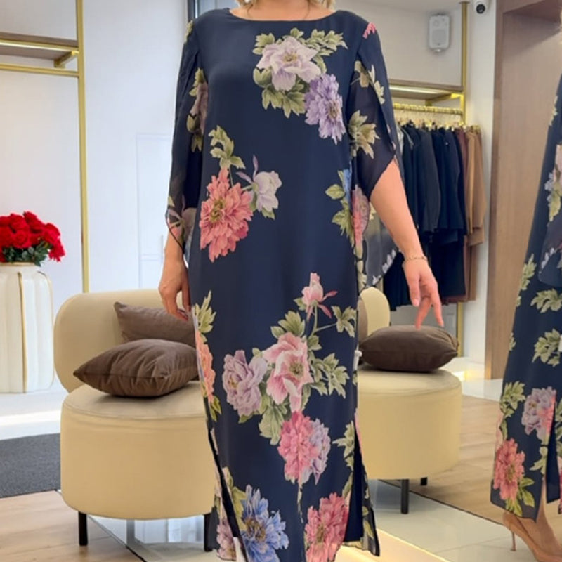 Balení obsahuje:1*Dámské elegantní dlouhé šaty s potiskem na krku.