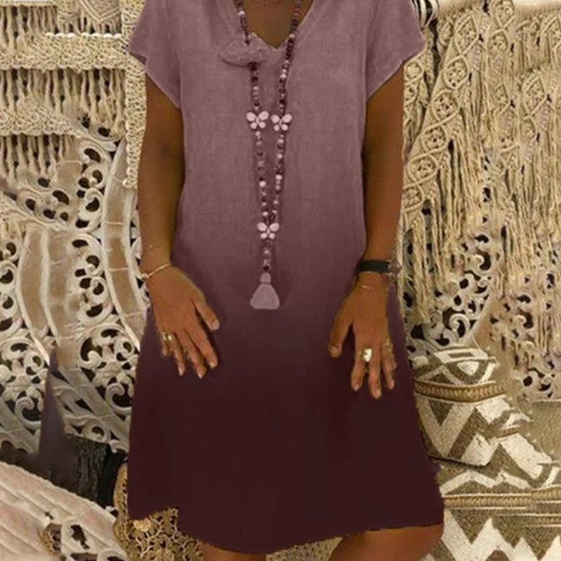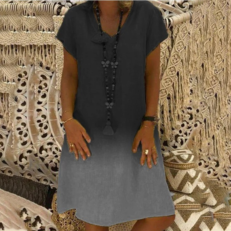 Uvolněné krátké rukávy - volný a pohodlný pohyb. Volné krátké rukávy poskytují prodyšné zakrytí, díky čemuž jsou šaty vhodné do teplého počasí a zároveň si zachovávají uvolněnou atmosféru. Lehký střih vám zajistí celodenní pohodlí, ať už vyřizujete pochůzky, odpočíváte doma nebo míříte na pláž.