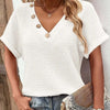Výstřih do V, krátký rukáv, knoflíkový design, volný střih, jednobarevné, jednobarevné tričko, pohodlné a krásné dámské letní tričko. Toto pletené tričko s krátkým rukávem je ideální na léto, podzim a jaro.