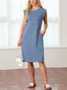 - Tyto jedinečné šaty střední délky mají trojúhelníkové náplety v podpaží a provedení bez rukávů pro skromný vzhled.